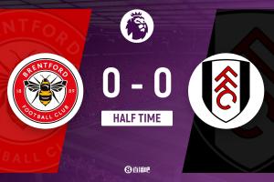 上半场伤停补时2分钟,半场结束,布伦特福德暂0-0富勒姆。