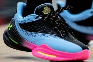 值得一提的是,球员本人上脚的最终版本是将库里Logo改回了UA品牌的Logo。而此前热火球员米切尔穿着的样鞋是库里Logo版本。