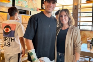 在退出ATP500巴塞罗那后,阿尔卡拉斯于上周五宣布不会参加马德里大师赛。正是由于在巴塞罗那对阵芬兰选手维尔塔宁的首轮比赛中,这位西班牙人的右前臂受伤。本周一,Restaurante Los Chopos的Instagram账号发布了一张这位世界第二的照片,照片中他的右臂带着护具。即便在劳伦斯盛典现场,这位西班牙天才也一直佩戴着该护具。前西班牙网球运动员洛佩兹透露,自己此前曾因为类似的伤病休战2个月,认为阿尔卡拉斯也几乎不可能参加罗马大师赛。